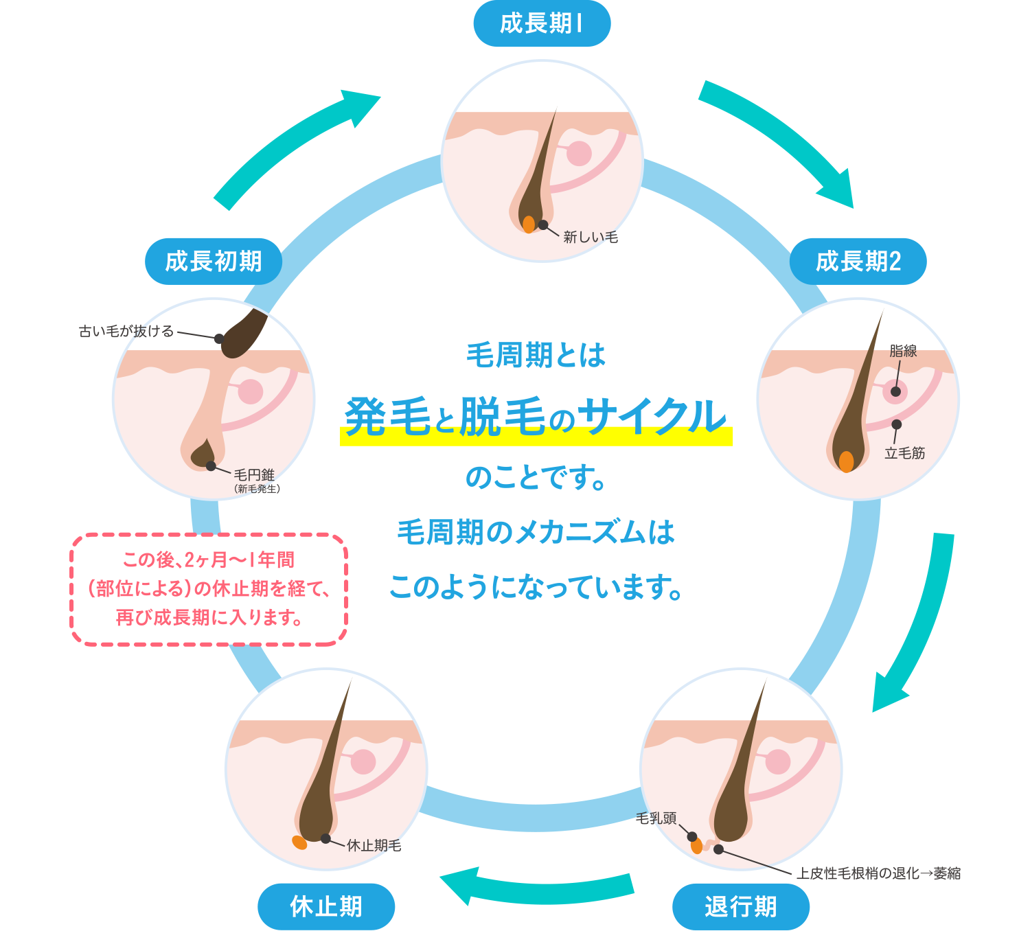 そのため毛周期に合わせて産毛などの薄い毛が生えてきてしまいます。