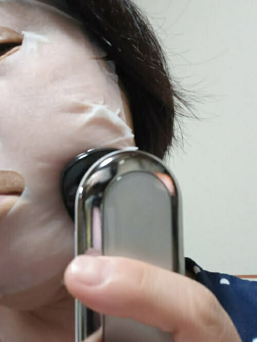 美顔器がマスクの上からでもスムーズに滑ってくれて、マスクの上からでもラジオ波の温かさをしっかり感じることができました。